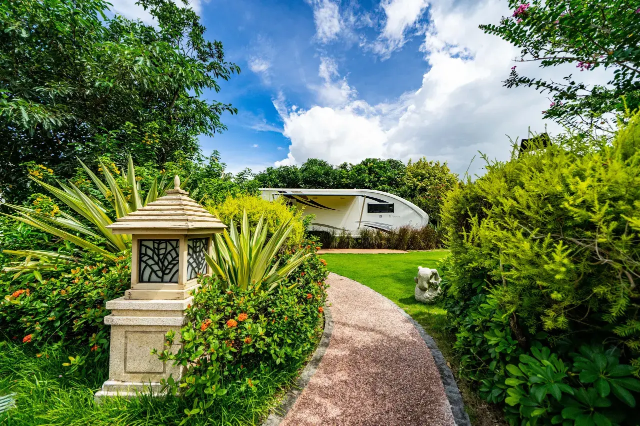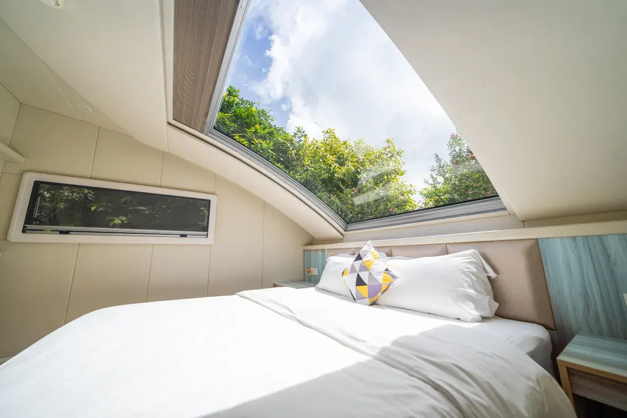 Experience the magic of sleeping under the stars with all the comforts of home in the Courtyard Starry Sky RV at Hengqin Sumlodol Camping Park.